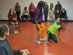 En guise d’intermède, l’émouvante démonstration de danse de la compagnie "Tout sauf le dimanche" avec des extraits de son spectacle « Vu », a mis en lumière la relation réciproque et nécessaire entre deux danseurs, l’un mal-voyant et l’autre non. Belle illustration artistique des enjeux de la pair-aidance.