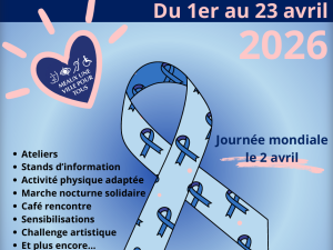 Rencontre Mois de sensibilisation à l'autisme à Meaux Ateliers, stands d’information, premiers secours en santé mentale adaptés aux TSA, activités physiques adaptées, marche nocturne solidaire, cafés rencontres, challenges artistiques, et bien plus encore ! Du 01/04 au 26/04/2026 Meaux 01 83 69 01 59 Programme détaillé Email Ville de Meaux et partenaires Localiser Choice of plan Precedent Retour à la liste Suivant